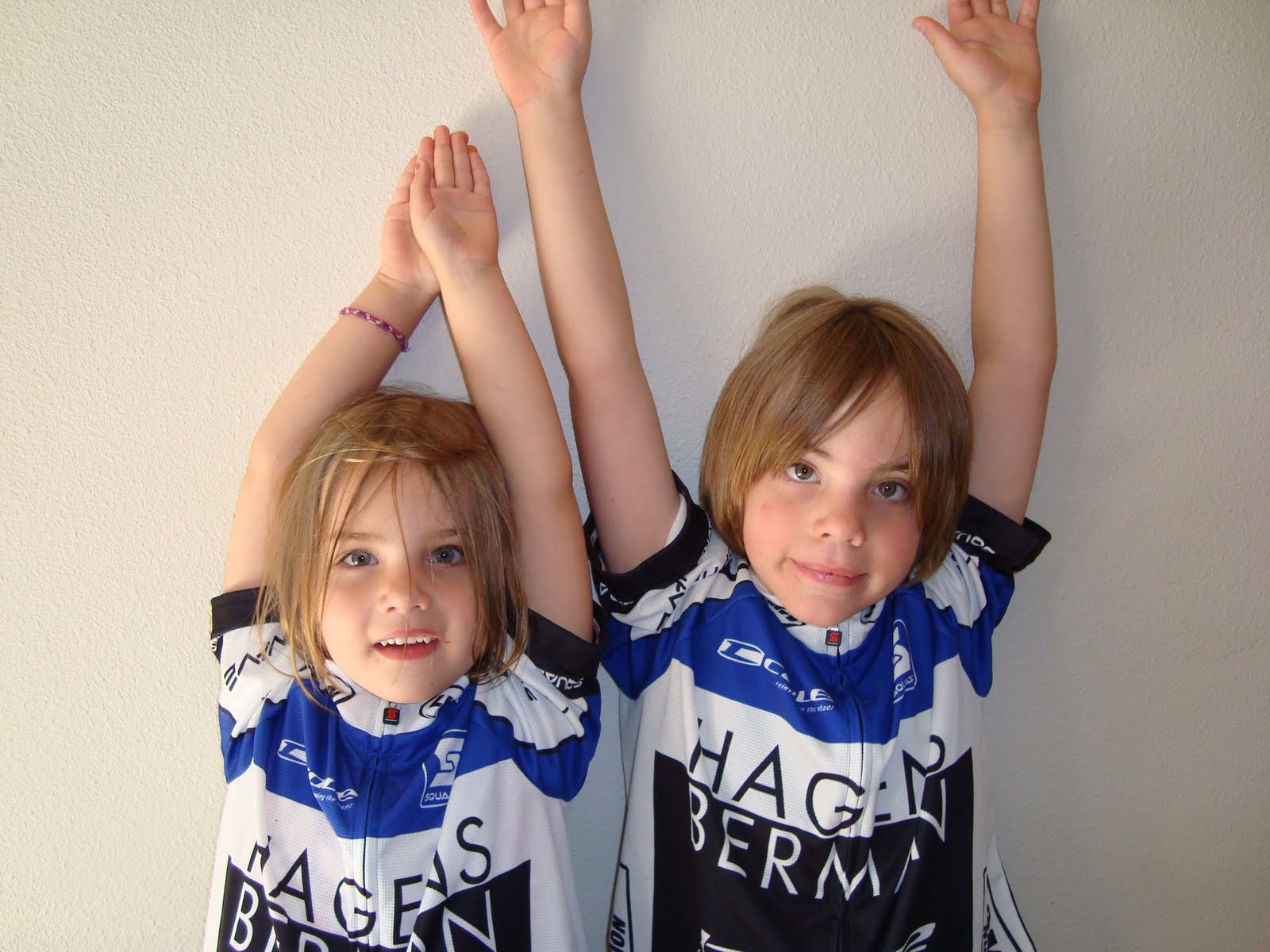 To cheer things up, here's a photo of our homestay children, sporting Hagens Berman jerseys, and posting up for the camera: